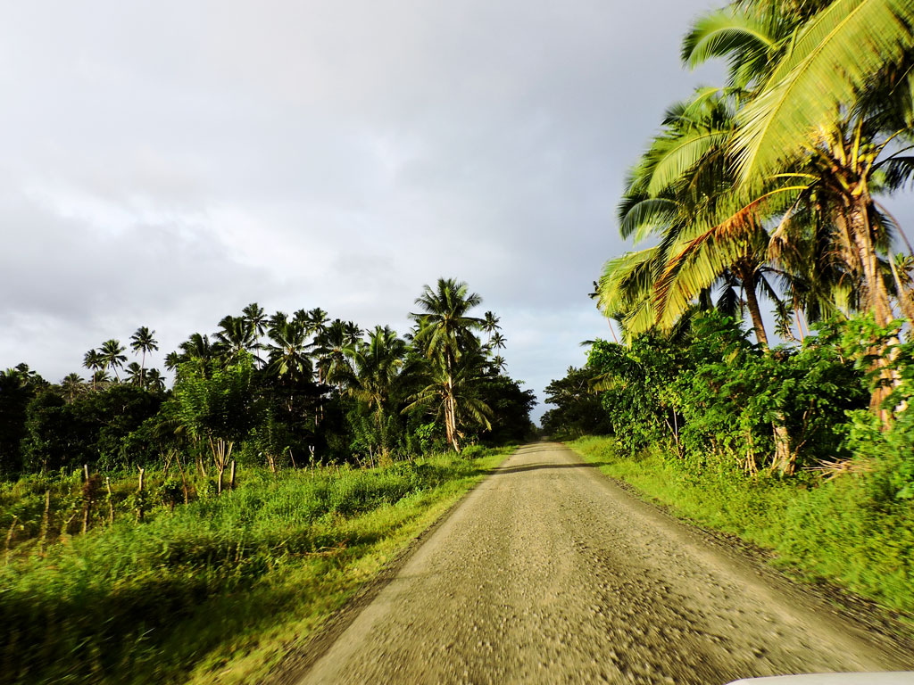 След като се разходихме из причудливото село тръгнахме по пътека през кокосовите градини. Не след дълго излязохме на съседния залив, на дълъг сивкав плаж, сигурни, че това е заливът в близост до нашия бивак. Извървяхме целият плаж и стигнахме до прекия горски път, водещ до кемпа. Докато крачехме из гъстата джунгла, под странно разкривените дървета непрестанно си говорихме. Така си вървяхме, но всъщност пътят все се виеше навътре в гората, а по мои спомени лагера не трябваше да е на повече от 100-200 метра. Помислихме си, че сме свърнали по-рано, по по-дълго разклонение и скоро ще излезем в нашия залив. Срещнахме група мъже, които садяха корени ям и те ни упътиха да следваме пътя все направо. Почерпиха ни печени ям и кокоси за пиене. Продължихме на пред, но след 10-15 минути започнахме да се чувстваме неуверено. Не беше възможно да вървим вече близо два часа и все да не стигаме. Започнахме да се чудим дали да не се връщаме, още повече две сами момичета шляейки се из джунглата на тези меланезийски региони не е от най-сигурните занимания.