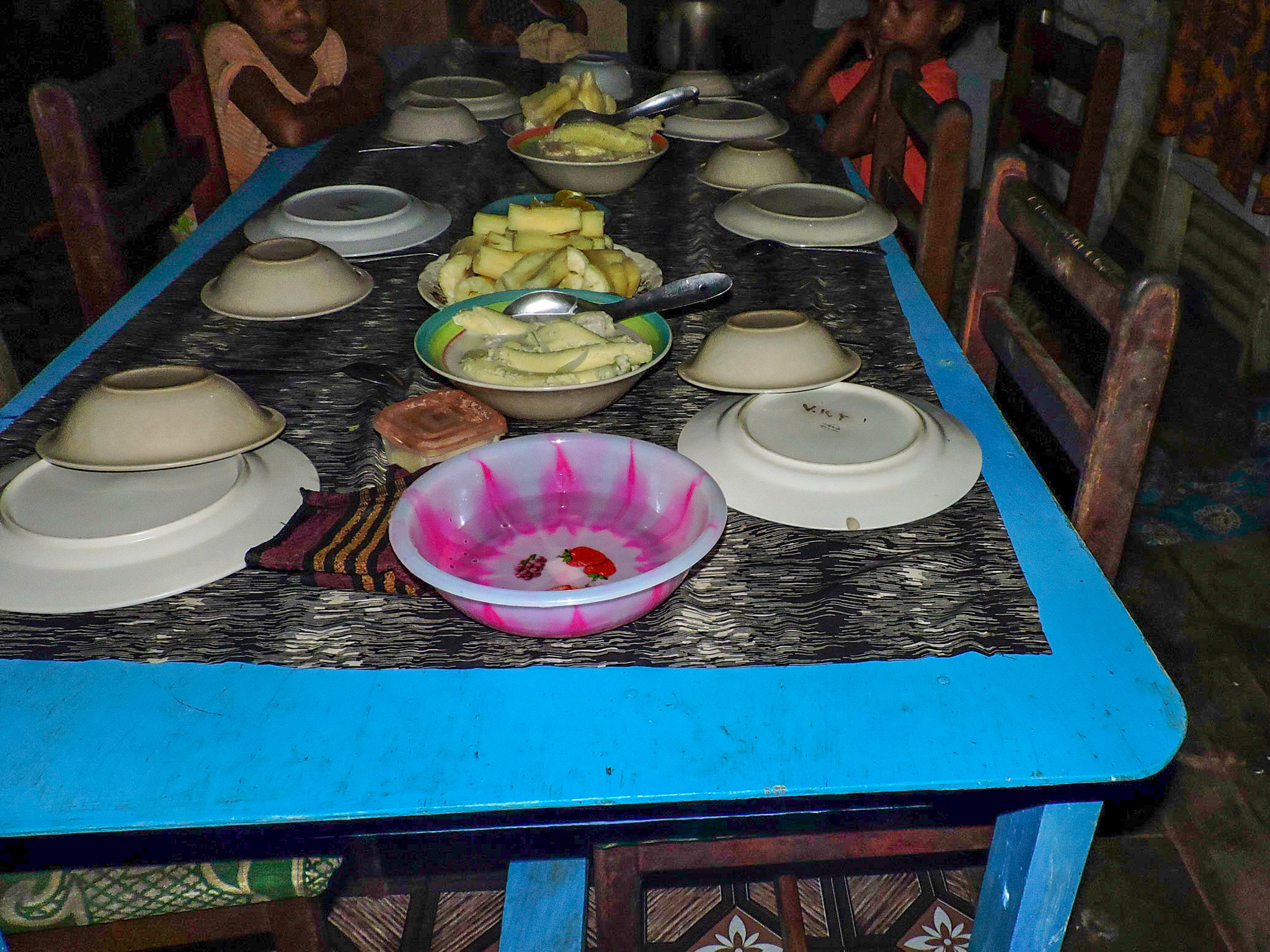 Няколко симпатични жени ни поканиха да си полегнем на дървената веранда на къщичката им. Обсипаха ни с банани, кокоси и дори бисквити. В селото имаше мъж от Мелип, който планираше скоро да се връща към селото си, така че се сдобихме и с придружител. Върнахме се точно преди свечеряване, когато Цветин се приготвяше да вдига тревога, че сме изчезнали 🙂